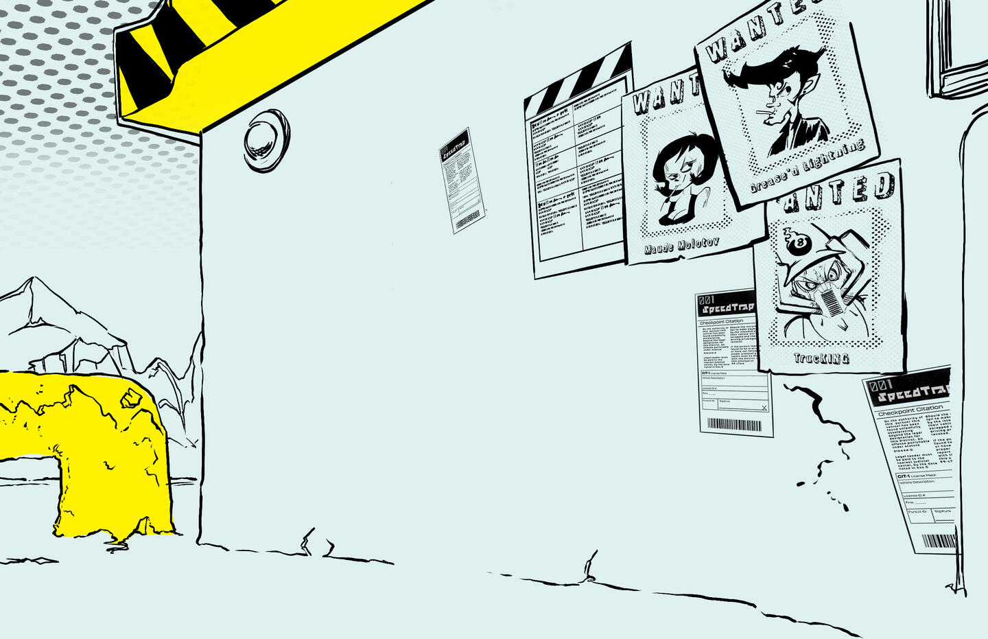 Below is the Process Work and backgrounds for "Speed Trap" an unfinished animated short I worked on in college