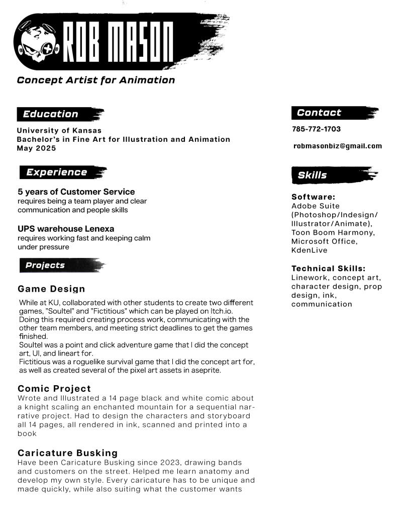 Concept Artist for animation/video games specializing in line work.